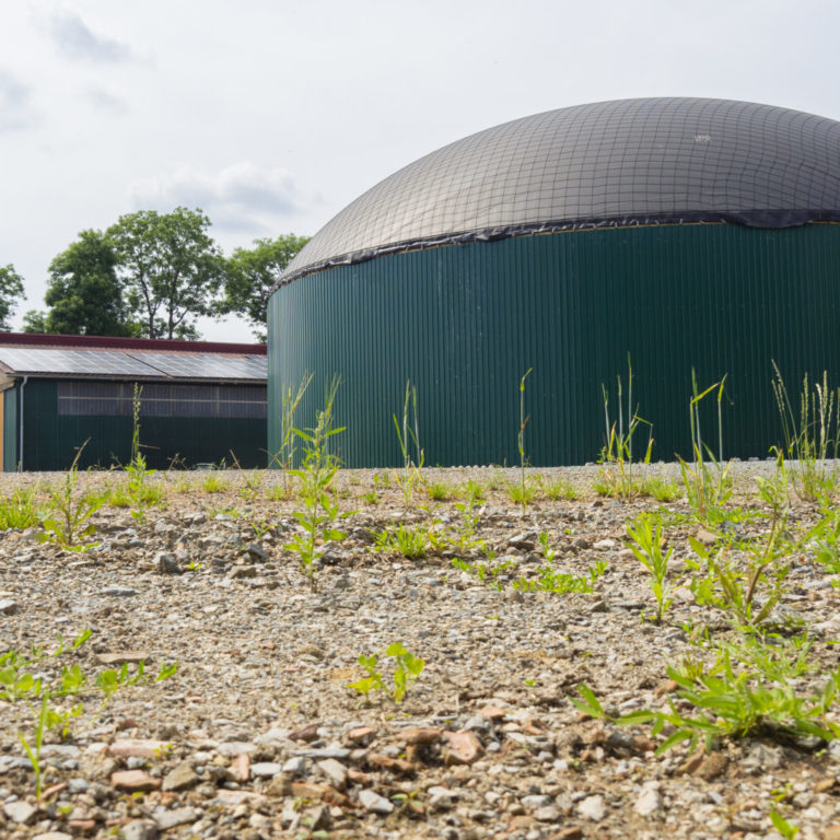 - Fermenter 2: Durchmesser 16m, Höhe 6m mit Tragluftdach, Volumen 1.106 qm³